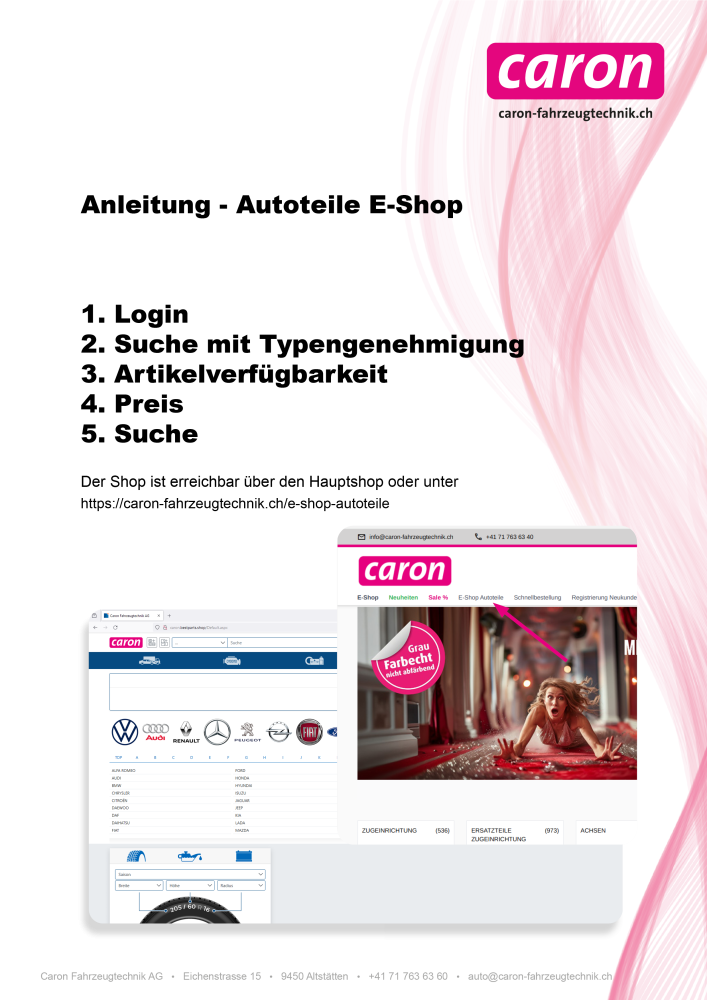 Anleitung Autoteile E-Shop Caron