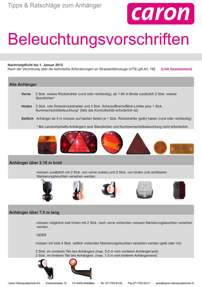 Beleuchtungsvorschriften für Anhänger