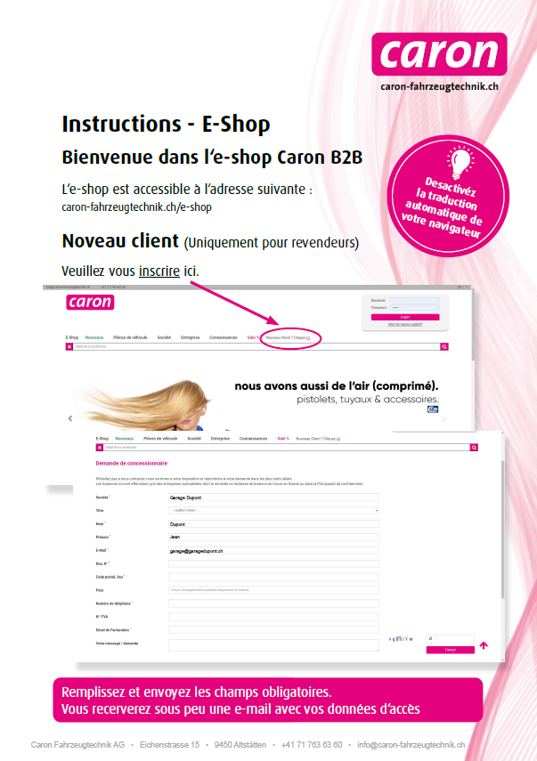 Mode d'emploi E-Shop Caron